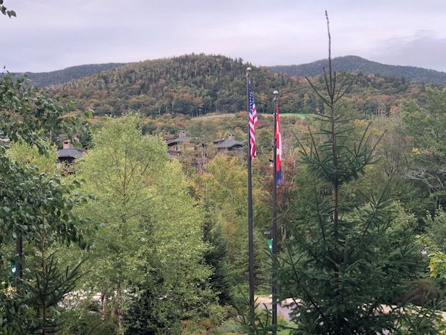 There were sliding doors that opened up to a terrace with a small table and two chairs. The view of Mount Mansfield was so pretty since all the trees were starting to pop with color.