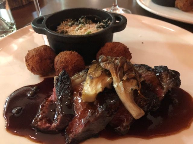 Next we had a Creekstone Farm Prime NY Strip (Pommes Dauphine/Creamed Spinach/Oyster Mushroom/Green Peppercorn Demi)