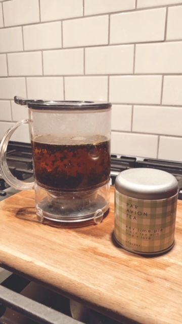 Transport yourself to warm, summer days with the next best thing to a slice of key lime pie – this is a pleasing and healthful black tea blend of lime leaves, lime juice, lime pieces, and sweet candied pineapple. This tea was incredible both hot and cold, but I especially liked it iced. The lime gives it a fruity taste so I didn’t even need to add a sweetener. It will be perfect to drink all summer!