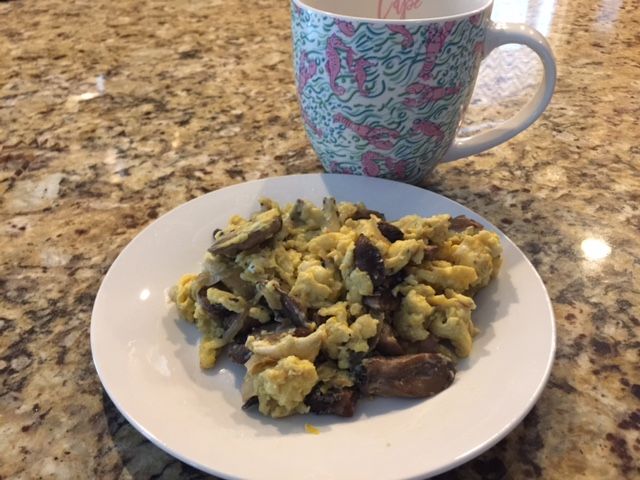 My husband is traveling tonight so that made it Breakfast for Dinner Night! (whoop whoop…haha…that’s a whoop for the meal…not for him traveling) I used the ghee tonight to make an egg scramble. It came out so good!