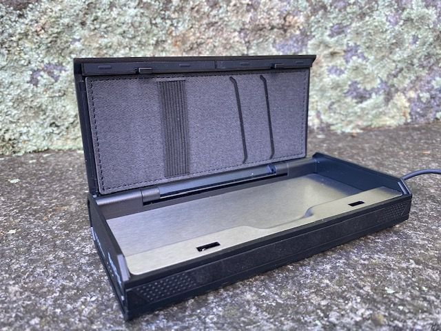 It includes a 3-way USB/Type-C/USB mini cord. I like that it has a stainless-steel magnetic tray so you can put stuff like loose coins in it and they won’t move around. I also like that it is difficult to figure out how to open the safe if you don’t know how to do it. None of us could figure it out, but after you know where to press it is easy to open. The battery pack charges quickly and it is a nice size that you can throw it in your purse.