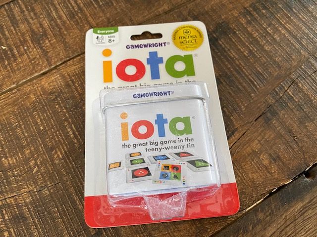 A travel-size game called Iota (the great big game in the teeny-weeny tin). We’ll be testing this game out today because the weather is miserable here. It looks like a great game to throw in your carry-on bag.