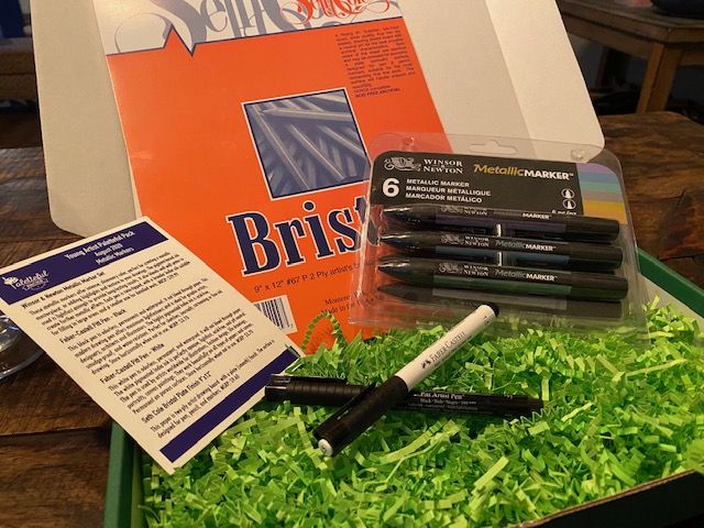 Each month you’ll receive a thematic selection of art supplies. Every box will include a variety of media. Products include paint, pens, pencils, brushes, markers, and more!