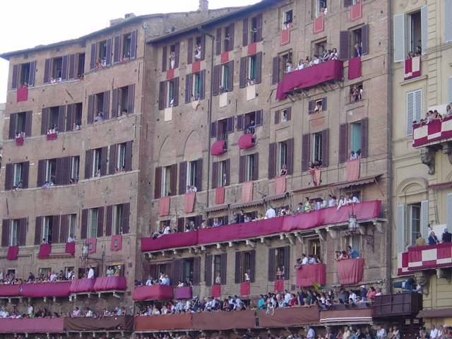 Imagine standing inside a crowded piazza in Italy as horses and their riders soar around you at top speed, horses hitting the padded walls, and jockeys being thrown and collapsing onto the dirt track. Each summer, in Italy, tens of thousands of spectators come to Siena to experience the horse race called Palio. It is the most unforgettable race I’ve ever attended!