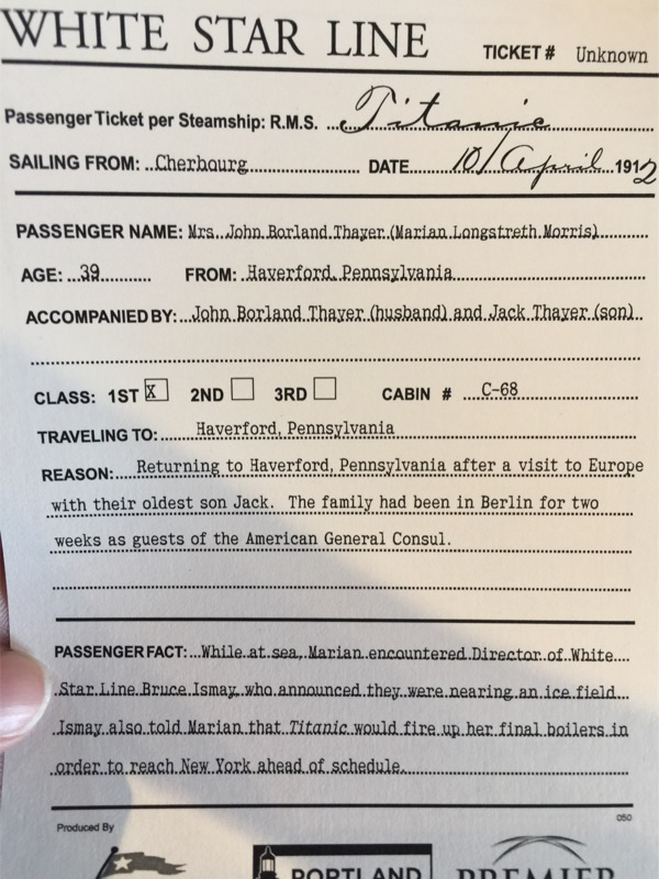 When you enter the exhibit you are given a boarding pass that assigns you the identity of a passenger that was on the ship. You are told your name, age, where you are from, who you’re accompanied by, where you are traveling, and for what reason. This immediately allowed my daughters to have a connection to the ship. Suddenly the people on that ship seemed real.