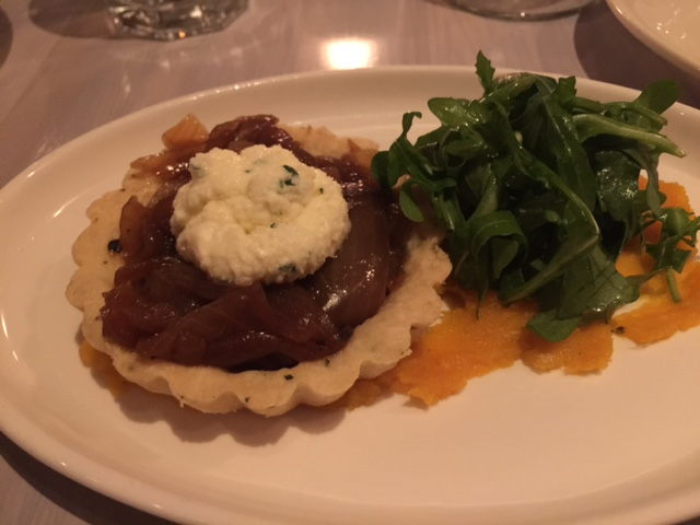 For my first course, I had a caramelized heirloom onion tart with whipped sugar pumpkin and baby arugula.