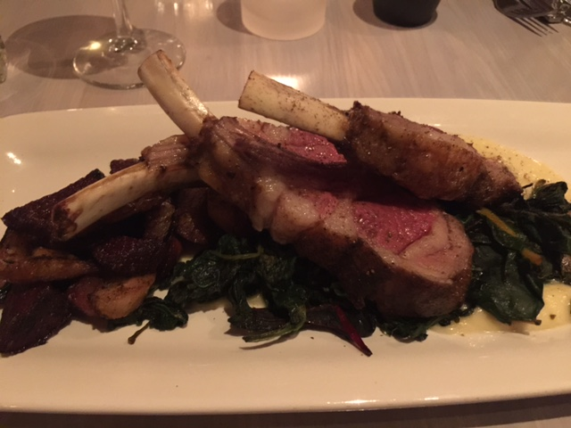 My next course was a triple bone in roasted lamb chop with leek soubise & zatar scented Maine carrots, accompanied by beets and greens. The lamb was cooked perfectly and the carrots and greens paired perfectly with their sweet and tart taste combinations.
