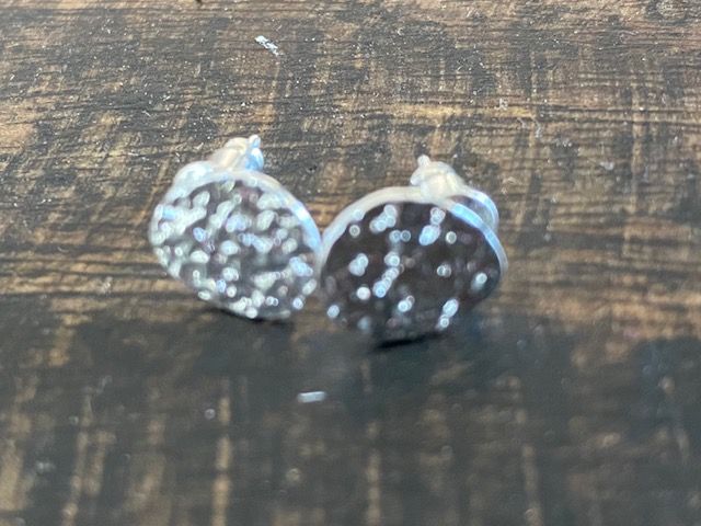The MARGARITTE HAMMERED EARRINGS are the same stamped circle. They look great in your ears and are perfect for everyday use. ($26)