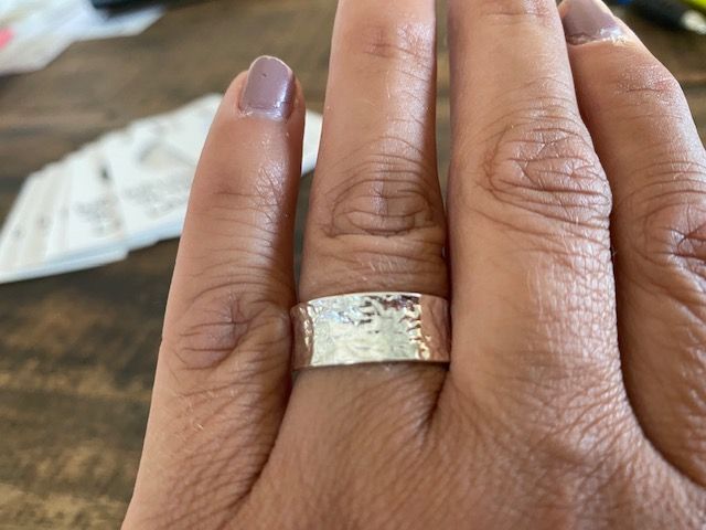 The MARGARITTE HAMMERED CIGAR RING was one of my favorite pieces because it looks chunky but is actually thin, so it feels nice to wear, especially in summer when I like to wear light jewelry. I love the stamping because it looks textured. ($22)