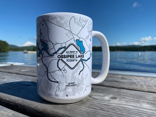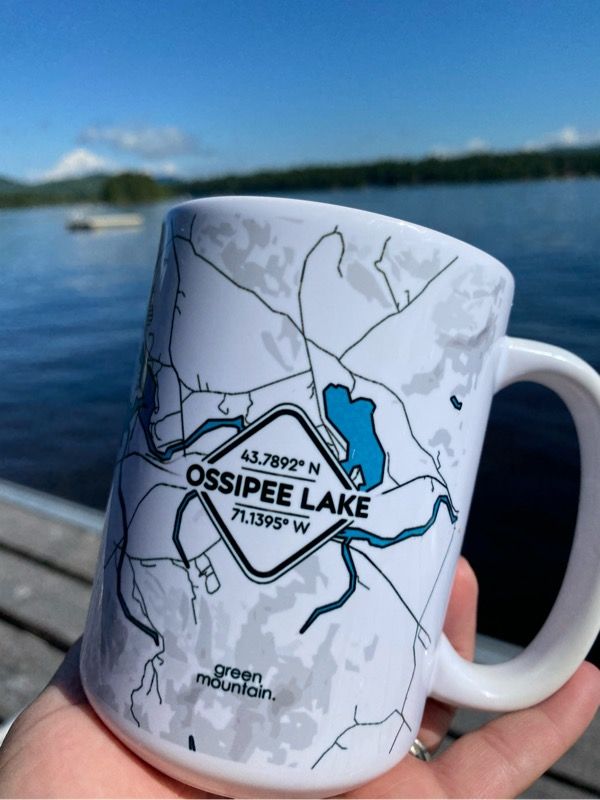You know there is no place as special to us as Ossipee Lake! I was so touched to receive this beautiful mug that helps remind us of our special place when we’re not there. This 15 oz ceramic mug has the coordinates of the lake on it as well as a detailed map of the area. It even has all the bays listed. I like that they are microwave and dishwasher safe, so you can enjoy more lake time!