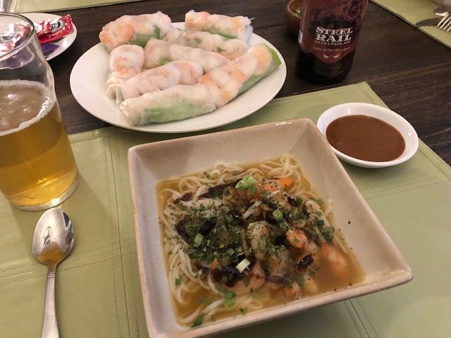 To accompany our pho, we made Vietnamese shrimp spring rolls that I’ve been dying to make. As suggested, we paired our meal with a pale ale.