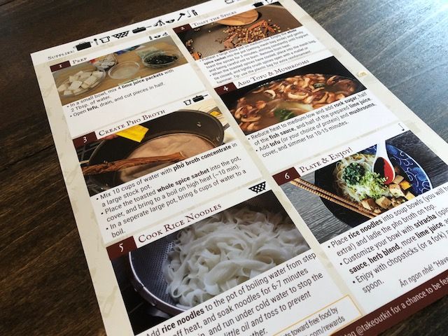 The box included a detailed recipe card with pictures and easy-to-follow directions. There was also a list of necessary kitchen supplies and suggestions for optional fresh add-ins and drink pairings.