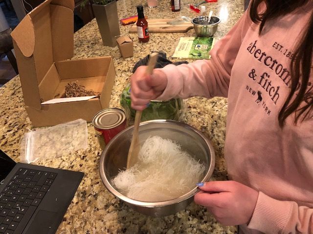 My husband and youngest daughter had gone camping the night before and were both exhausted so my oldest daughter and I told them we were going to make them a nice Vietnamese meal. We loved making this meal together and the directions were so simple she didn’t need my help at all. I love that the prep work is done for you and the meal came together in about 45 minutes. We had planned on making this meal in about two weeks after we were done with several trips, but we couldn’t wait to try it so we ended up making it the very night it arrived. I love that the kit gives you the chance to wait up to two months to cook it.
