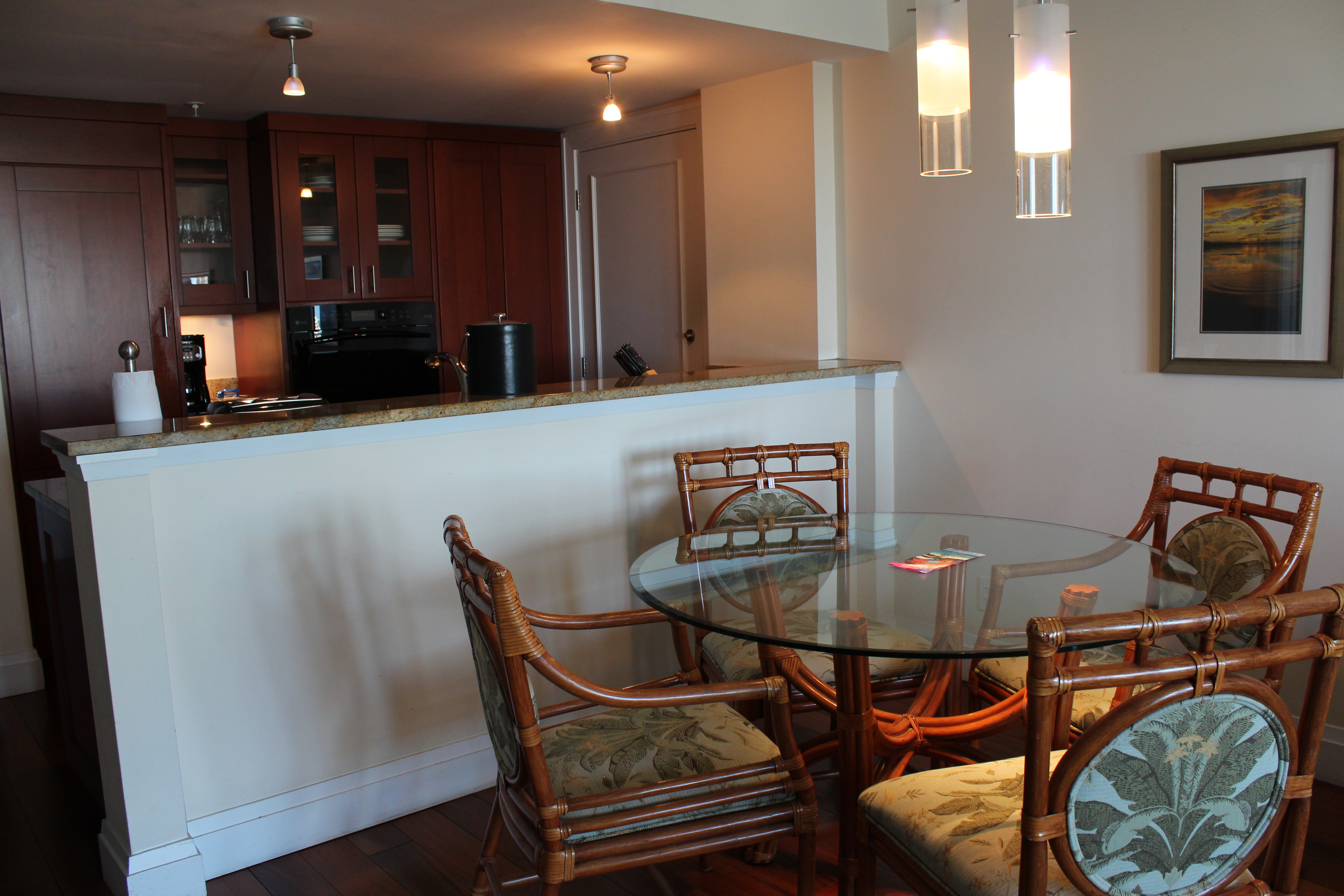 A great feature of our suite was the kitchen. There was a dining area as well as everything a person would need to make some delicious meals in their room. It had a refrigerator, stove, microwave, and dishwasher. It also had pots, dishes, wine glasses, pot holders, and utensils. It even had a coffee maker, toaster, and a blender. What else could you need?