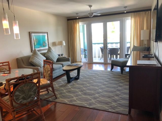 The resort has 45 studios and family-friendly suites to choose from. We were so pleased to be placed in a one-bedroom suite. This spacious suite contained a master bedroom with a lovely king size bed and comfortable linens. The pillows were so soft it was hard to get out of bed in the morning. The room also had a work desk, a flat-screened television, and an easy chair.