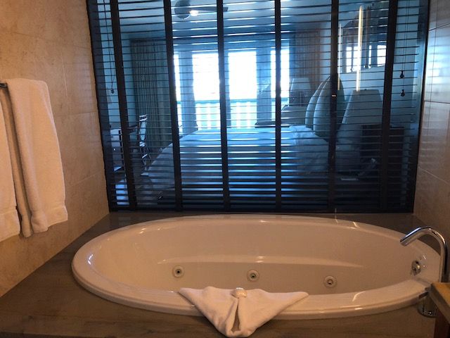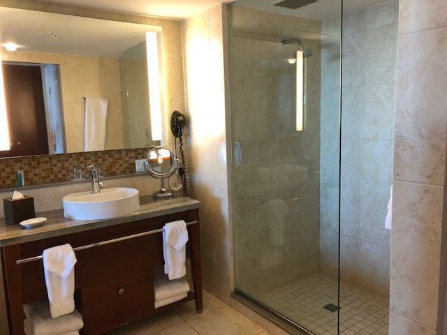 It also had a large glass-enclosed shower with powerful water pressure.