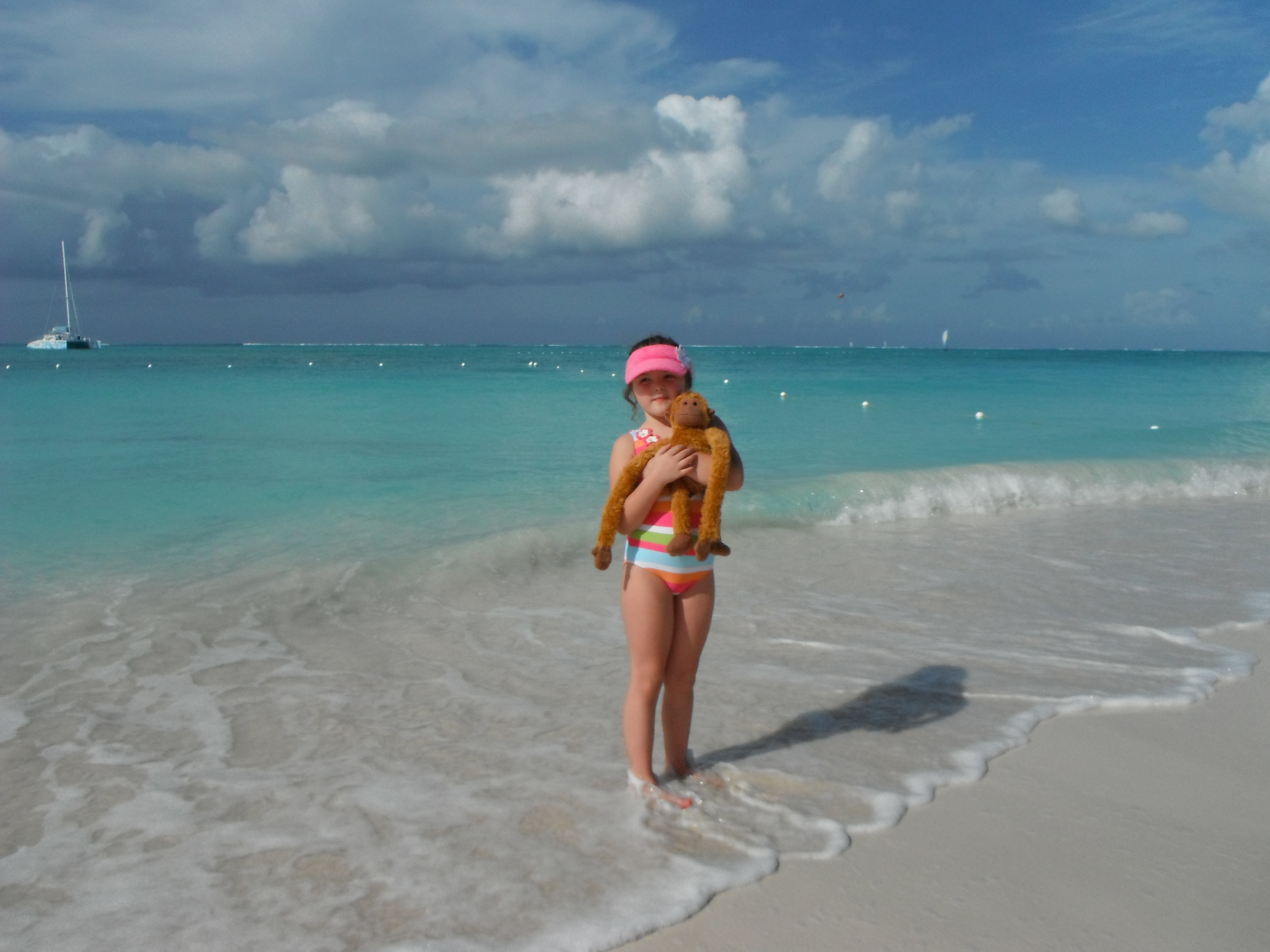 The beach was gorgeous and always had plenty of beach chairs and umbrellas. The sand was powder white and building sandcastles was a part of each day for us. The water was unbelievably clear and the hotel provides snorkel equipment that I would recommend using. They also offer water trikes, paddle boards, kayaks, and windsurfing. (PS…we don’t usually travel with monkeys but “Banana” was the class mascot and it was our turn to take him for the week. He had a lovely time at Beaches!)