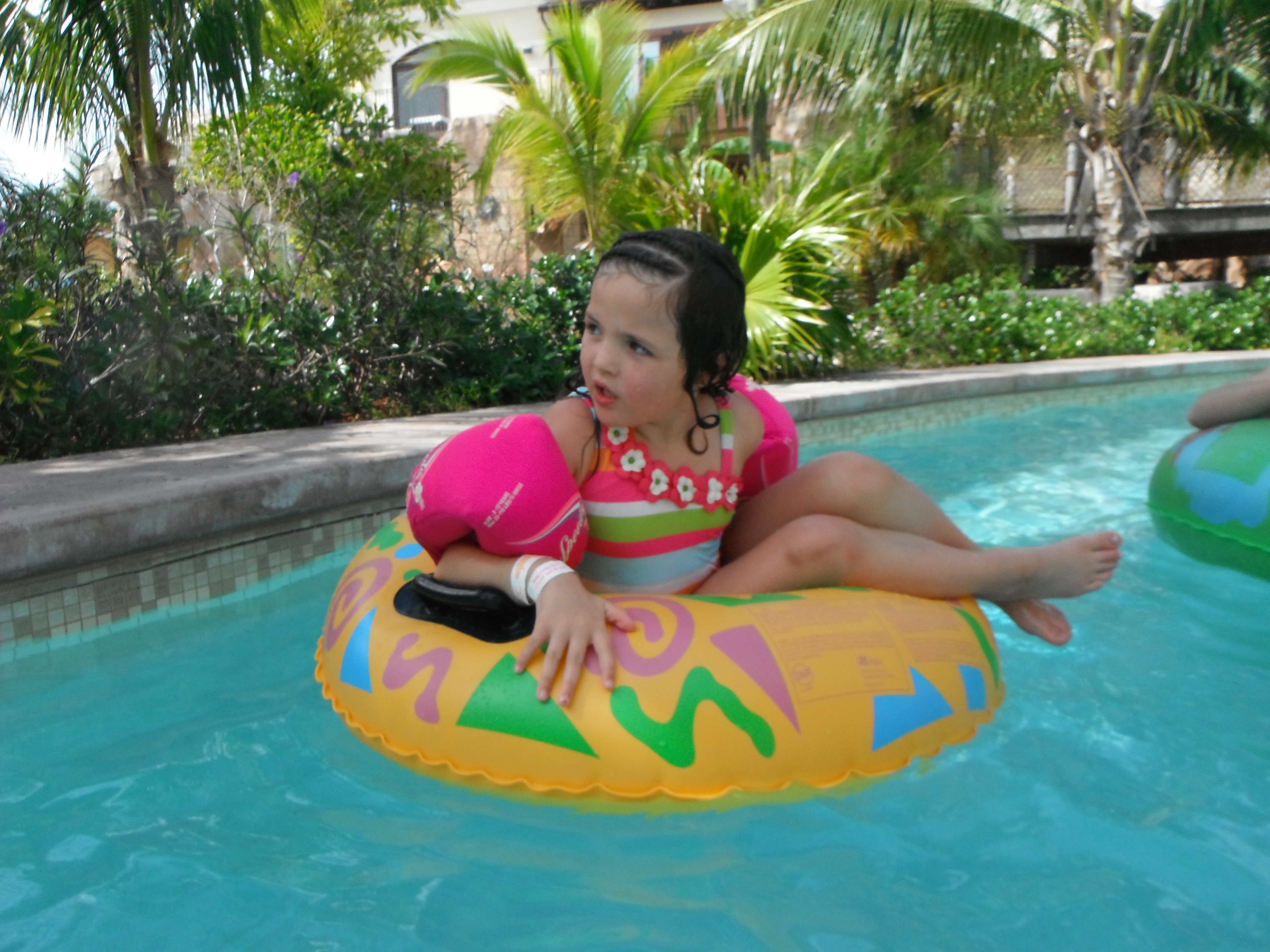 There are 6 pools at this resort: 2 kiddie pools, and 5 with swim up bars. The beach in the Italian village is where we spent most of our time because it is the largest and it was in the village we were staying in. The girls loved the swim up bar and would get strawberry banana smoothies every afternoon. (When we got home I was watching the girls play with their toy Strawberry Shortcake smoothie shop and overheard my daughter pretend that her doll, Blueberry Muffin, ordered a froze margarita. The things you learn on vacation!) There were several nights where they would set up a projector at the pool and you could sit on lounge chairs or float right in the pool as you watch a family movie.