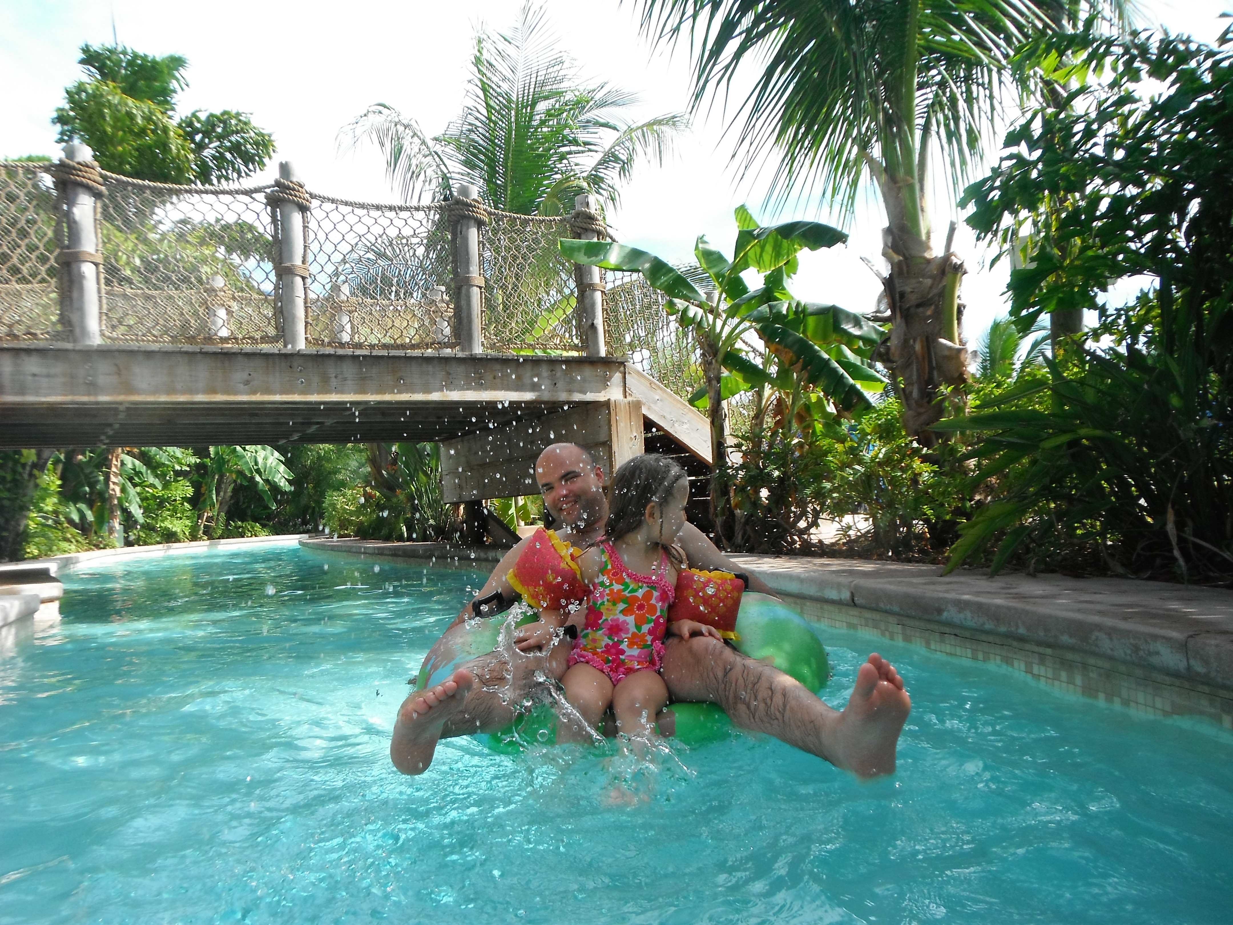 Another pool we liked was the Caribbean pool. It has a small waterfall and a cave you can swim through as well as a swim up bar. The pool in the French village is gorgeous and the gardens are lush with blooming flowers. I wasn’t a huge fan of the Key West pool. It was large and pretty but there was nothing special about it so we didn’t go in it on either trip.