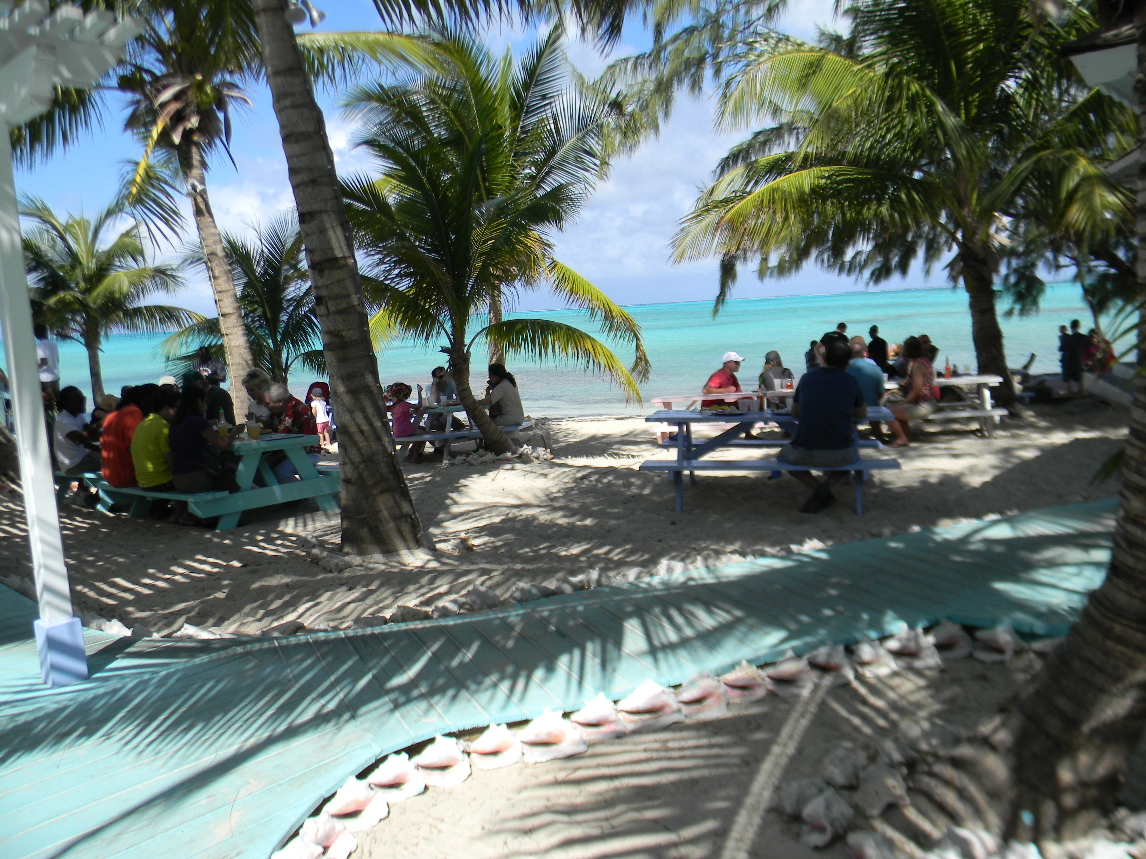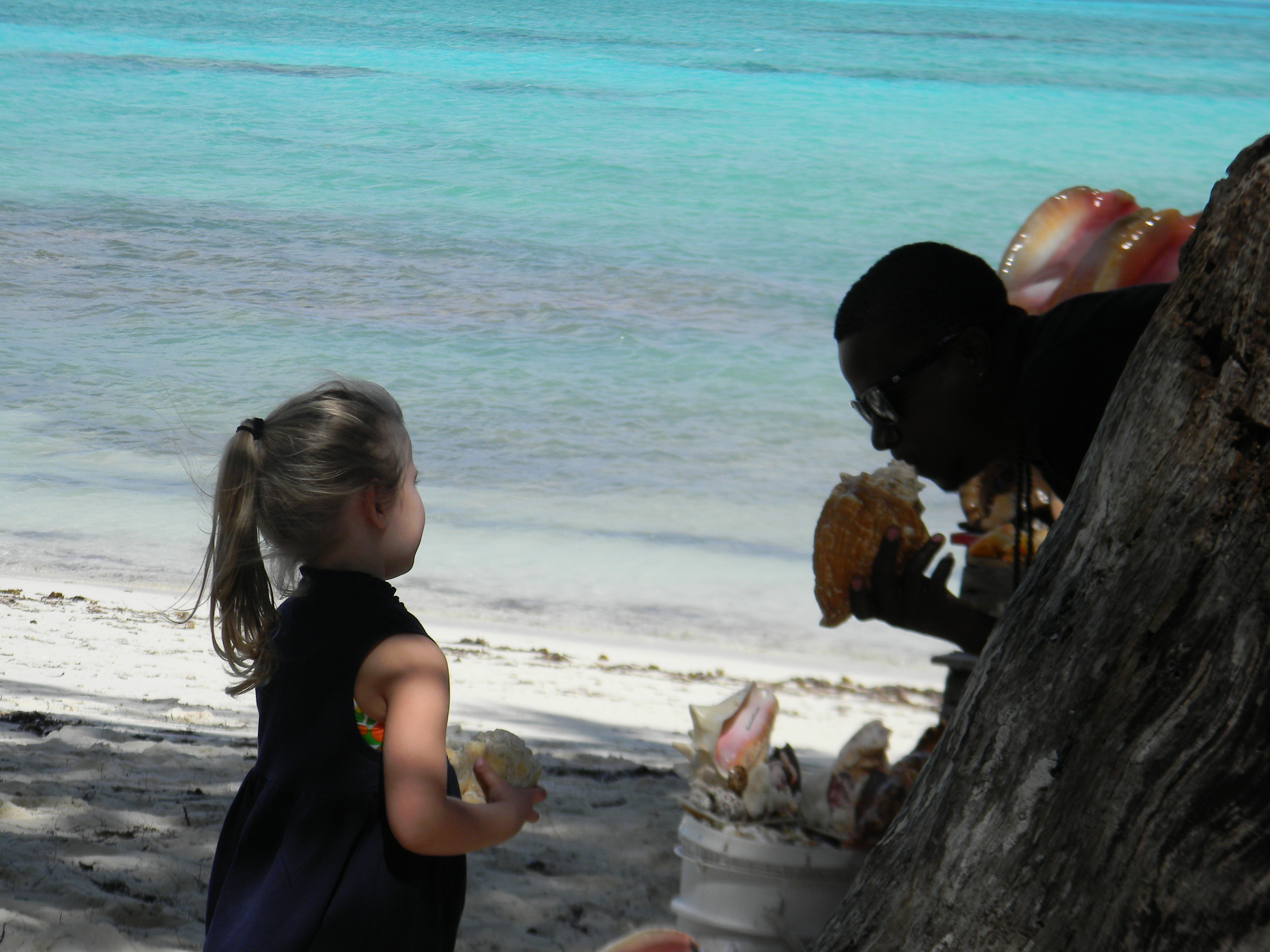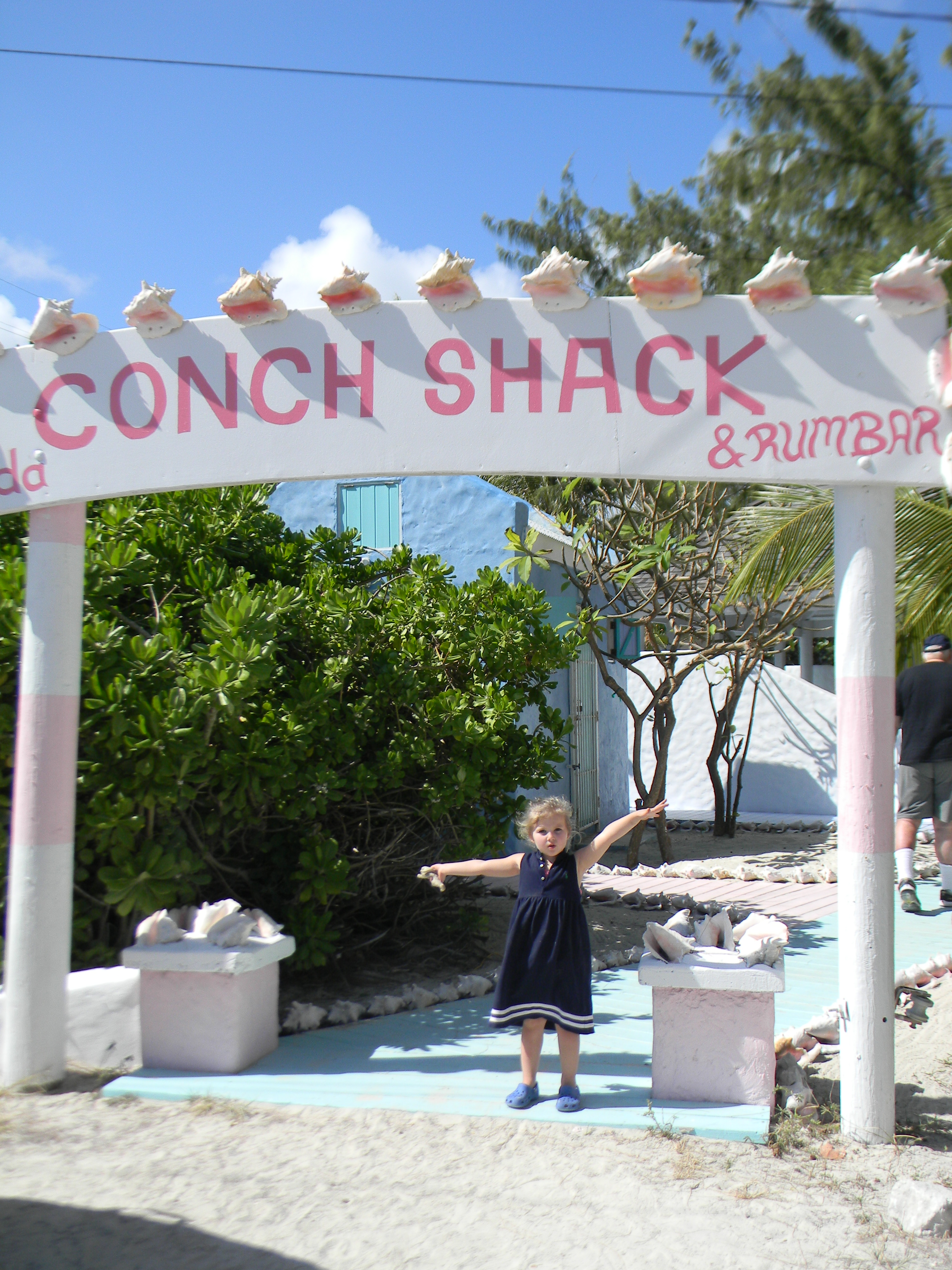 CONCH SHACK: I saw this place on the Travel Channel and knew we must go here. It is a beach bar/restaurant that has picnic tables right in the sand. Some of the staff members were selling conch shells and they took the time to teach my girls how to blow into a conch shell to make a horn sound. It was funny watching them and my husband blowing on the shell because it looked like such an easy thing to do and they just couldn’t do it. The main ingredient on the menu was…one guess…yes, conch. They serve it in every possible way: salad, fried, cracked, creole, fritters, curried, and even a coconut conch stew. They do not have much of a kid’s menu except for chicken fingers and fish sticks, so you may want to look at the menu before you go.