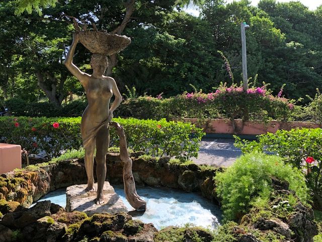 The well-maintained colorful gardens throughout the property immediately offer a peaceful oasis that makes you relax. There are statues and water features tucked into corners.