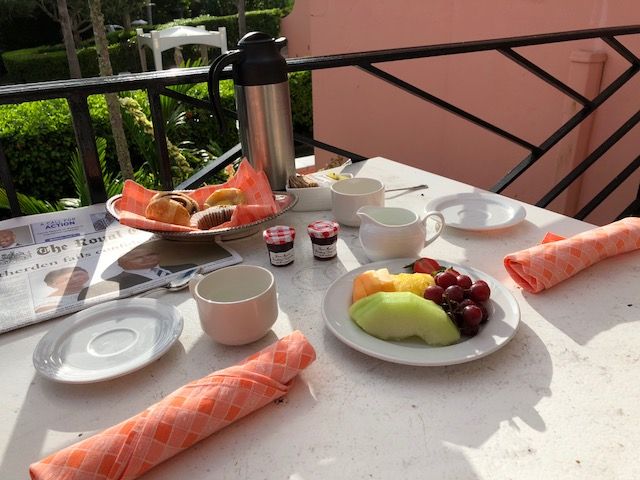 The next morning, at your chosen time, THIS is what they bring so you can enjoy it on your terrace! Warm pastries, fresh fruit, coffee/tea, and a local newspaper is a delicious treat. It was the most peaceful way to start my day!