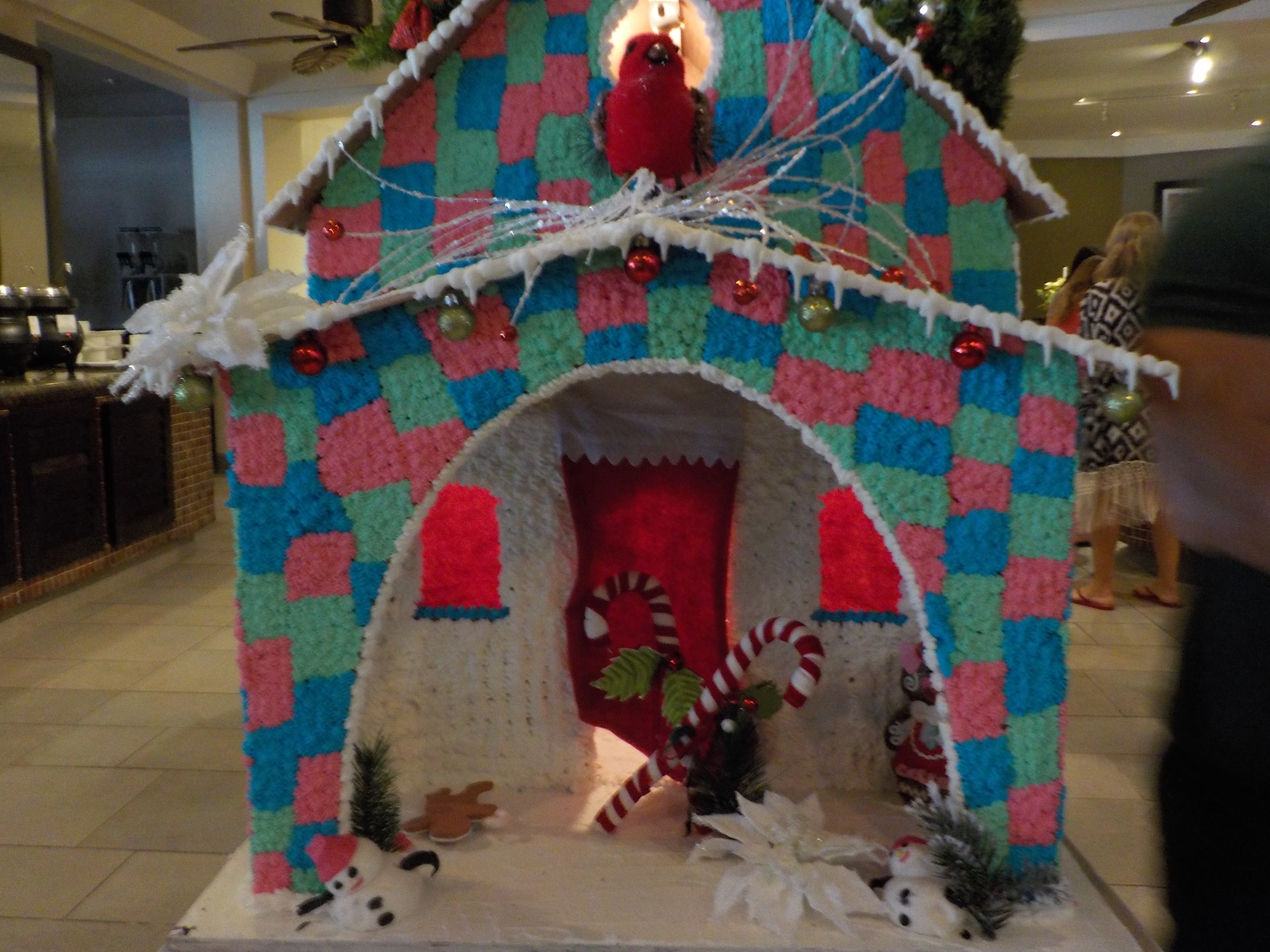 This fun restaurant represents the rich diversity of the islands and also offers delicious International cuisine. We ate breakfast here every morning (Mimosas were wonderful!) and many afternoons since they had a delicious Caesar salad station that I craved each day. Look at this beautiful gingerbread house they created!