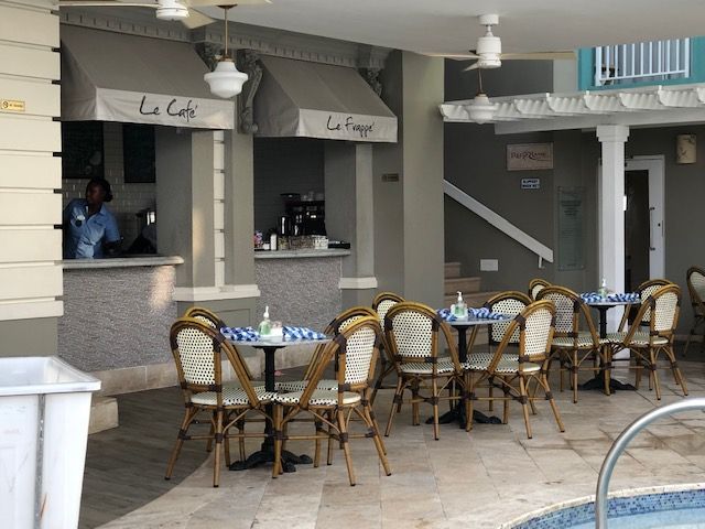 This classic BBQ restaurant is nestled poolside and serves up the best comfort foods. We loved their burgers and jerk chicken and pork. You can also order food and bring it back to your room or to the pool area. There is another seating area that we would go to because it had an incredible view!