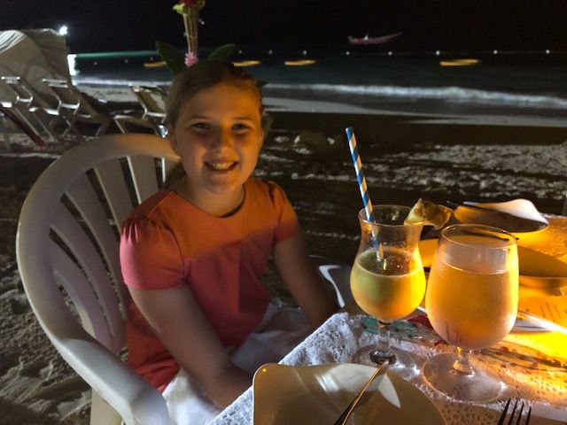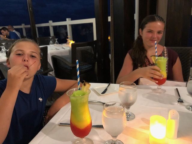 Our family’s first experience at a French restaurant was at La Parisienne. It had a classy ambience and impeccable service, while still managing to make my kids comfortable. We loved seeing the chic décor-blue velvet walls, modern art, rich colors, and magnificent chandeliers as we walked through. We ate a lovely meal on the terrace with a beautiful view of the Caribbean.
