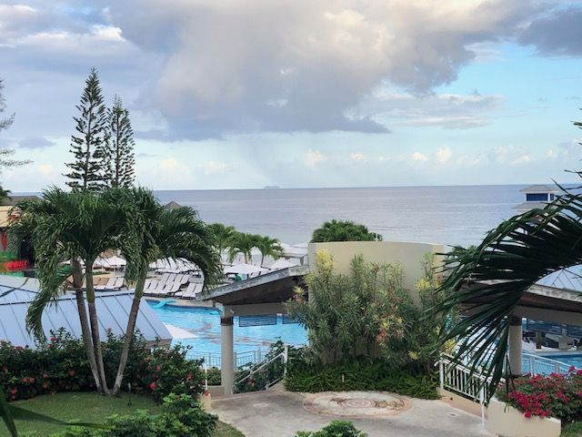 Our favorite feature of the room were the sliding doors which led to a large walkout balcony. The balcony had a table and chairs that we would often sit out on and relax or drink our morning coffee. We had a stunning view of the pool area and the Caribbean Sea.