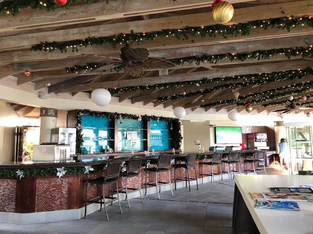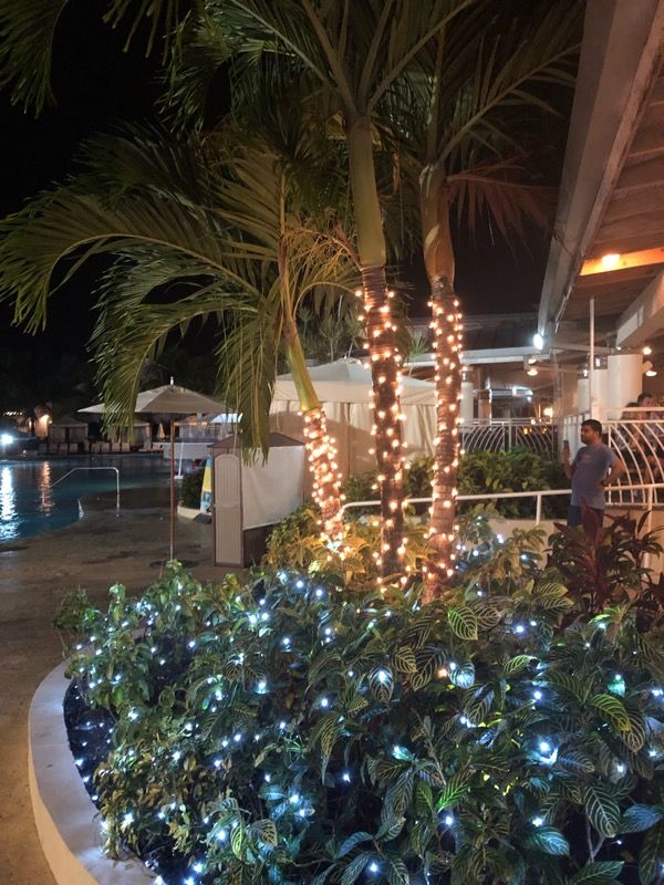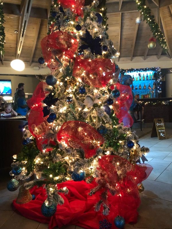 We were afraid since it was an island destination, the resort would not have a Christmas feel, but that could not be farther from the truth. The entrance to the lobby was transformed into a winter wonderland, with palm trees lit up with white Christmas lights. Gorgeous decorated trees and ornate table displays filled the lobby.