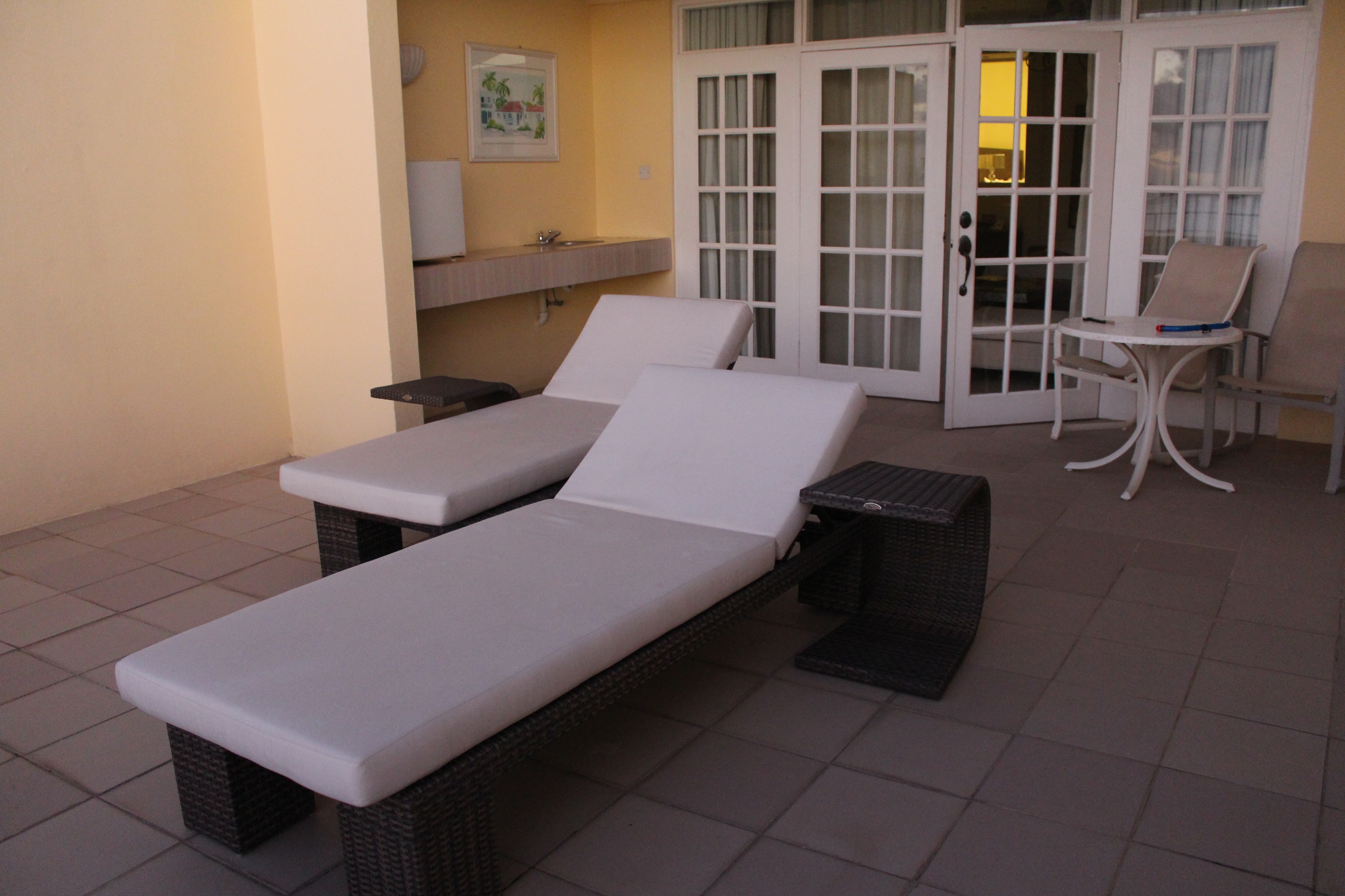 Our large patio overlooked the Caribbean Sea and had two padded lounge chairs. The gorgeous view was the perfect way to start our day.