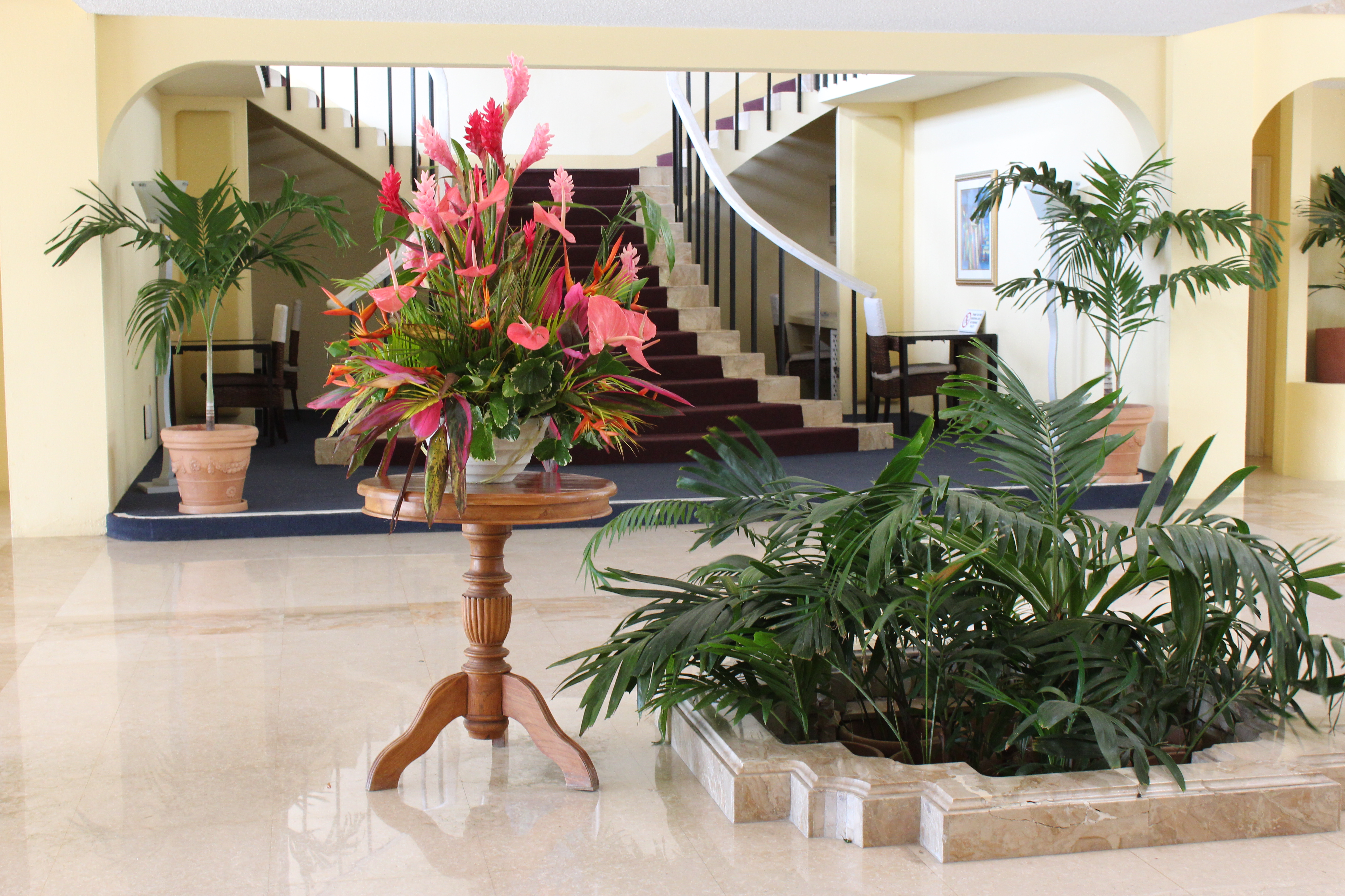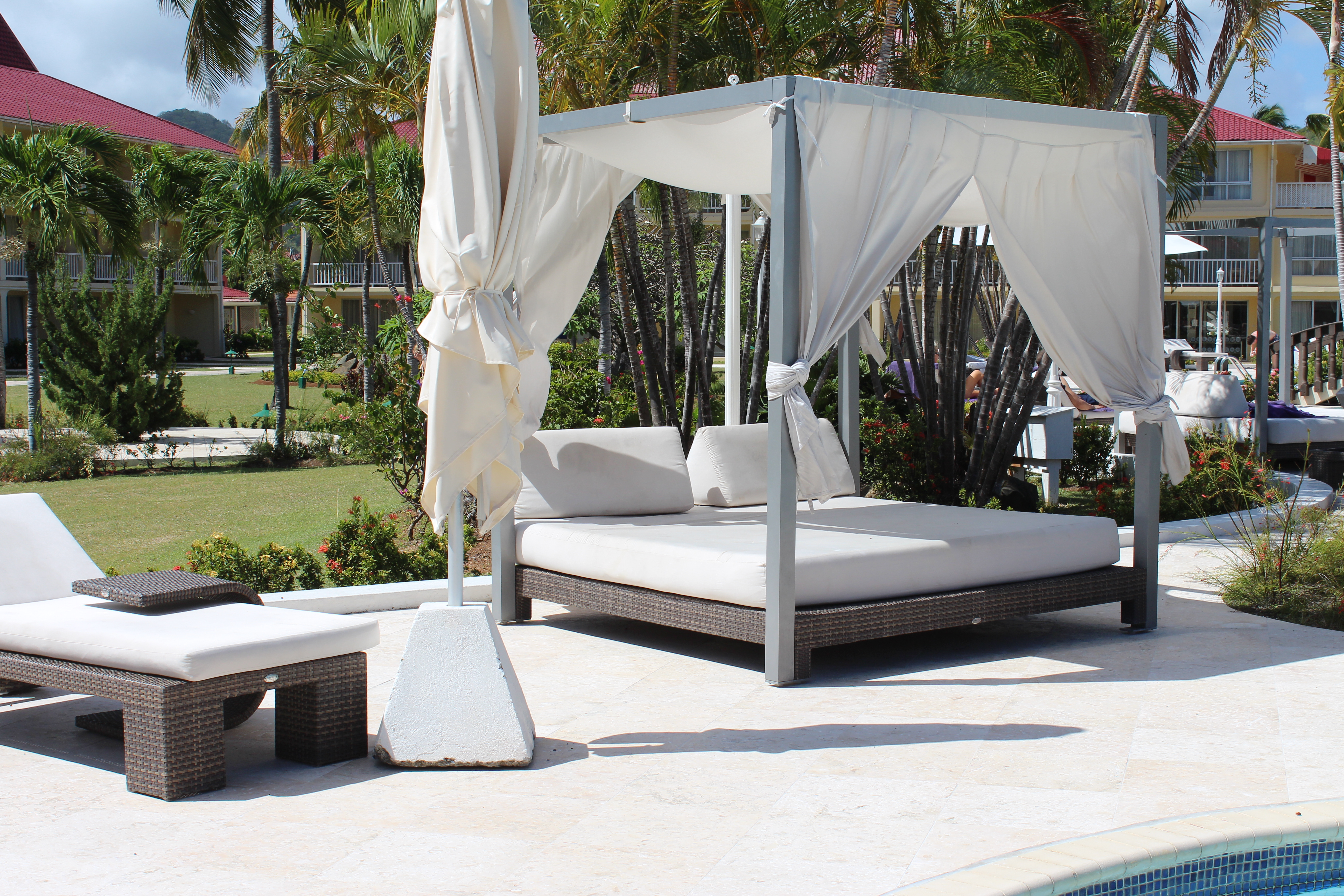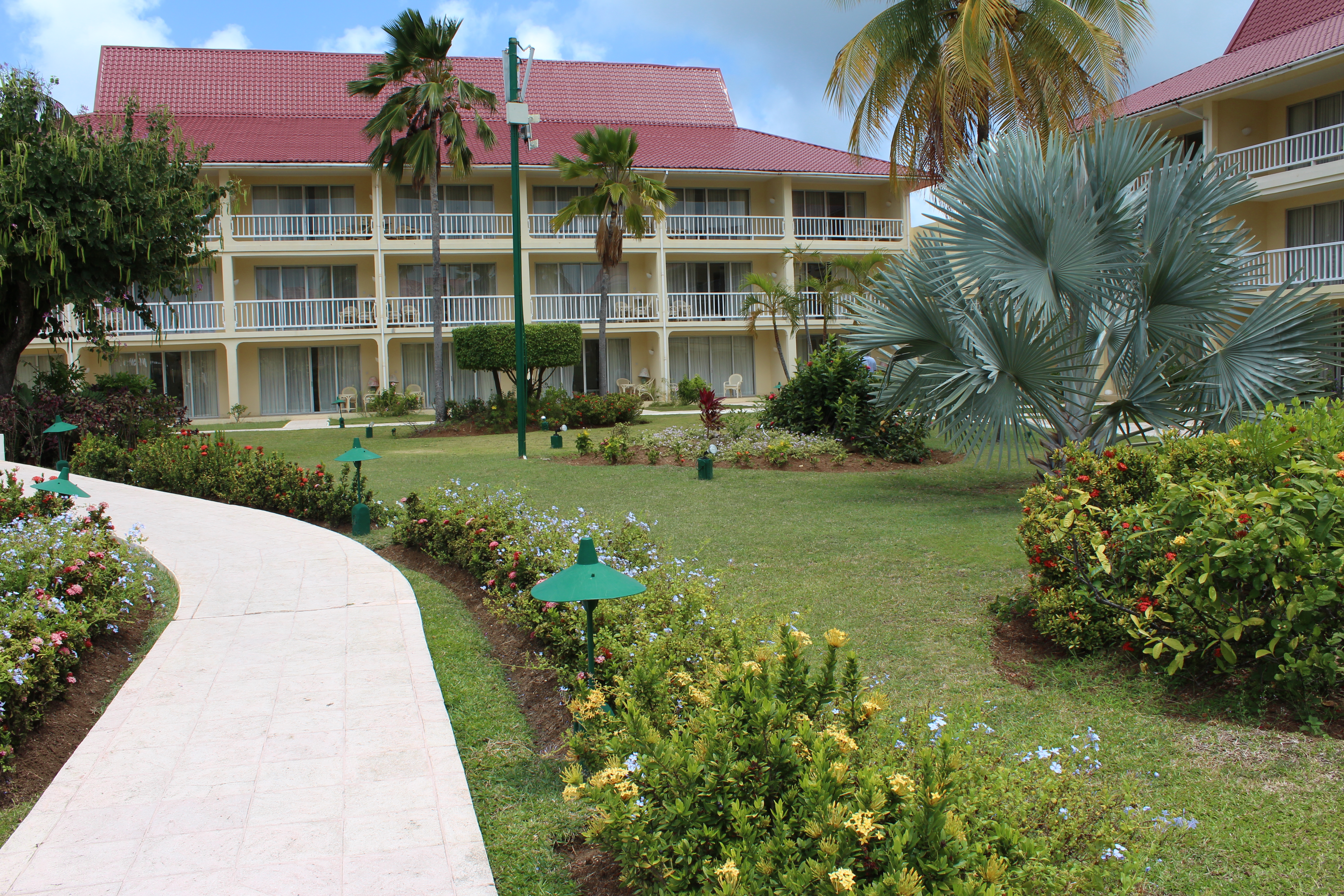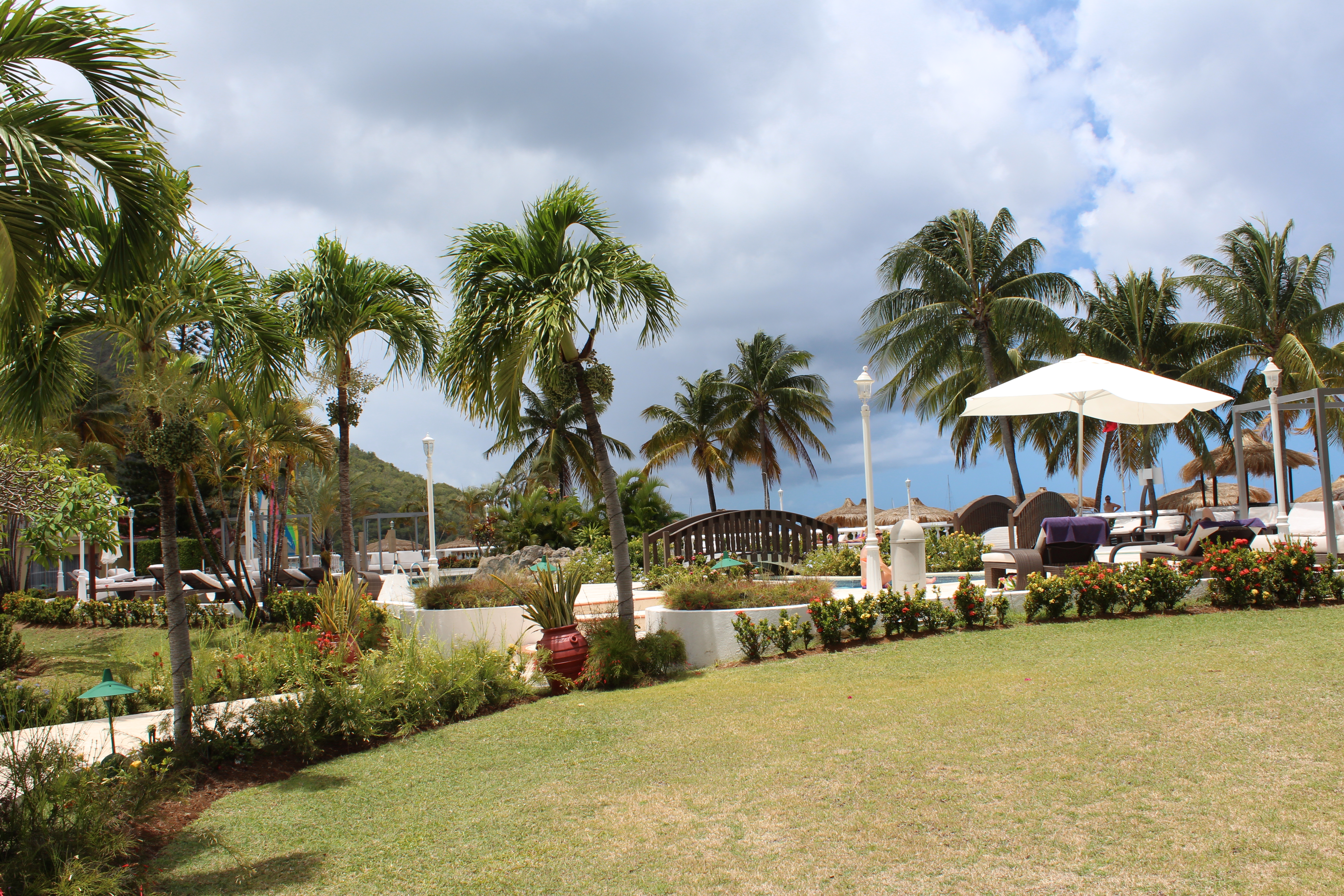 The well-tended grounds offer peaceful spots to relax and enjoy the tropical flowers and sea air. The paths wind around manicured lawns with palm trees and gardens. There are amazing views of the mountains all around you, reminding you that St. Lucia is a lush, tropical paradise. The resort is also conveniently located next to restaurants and is within walking distance to a downtown area.