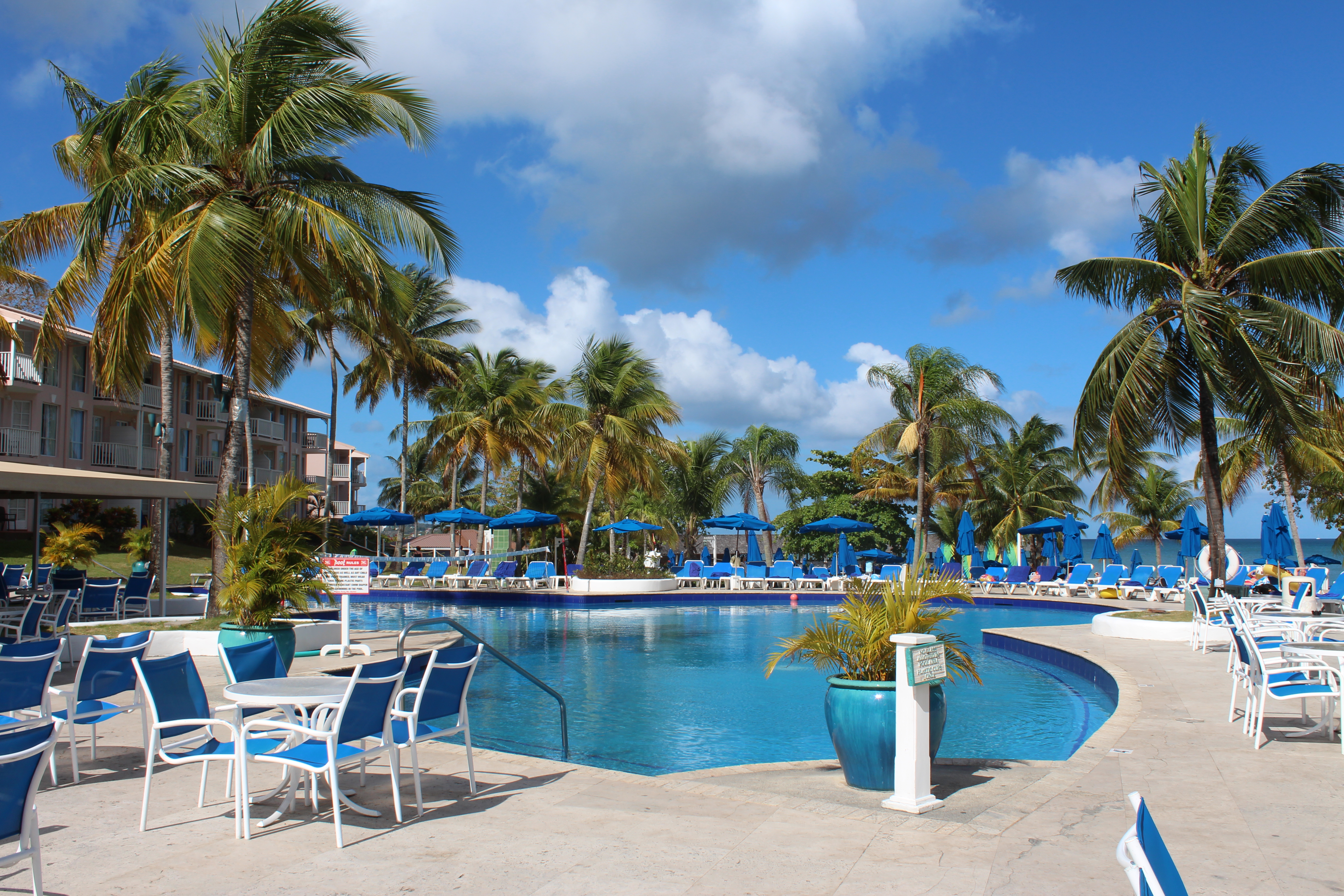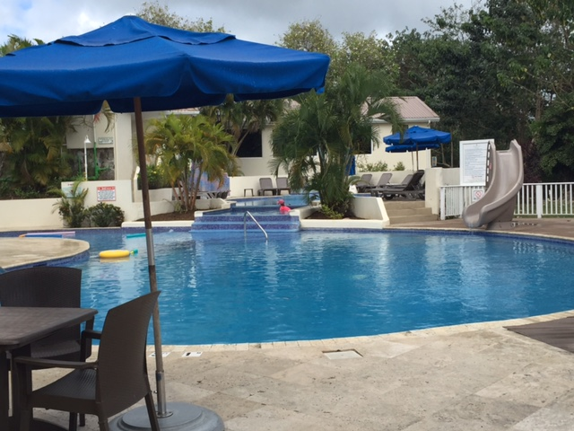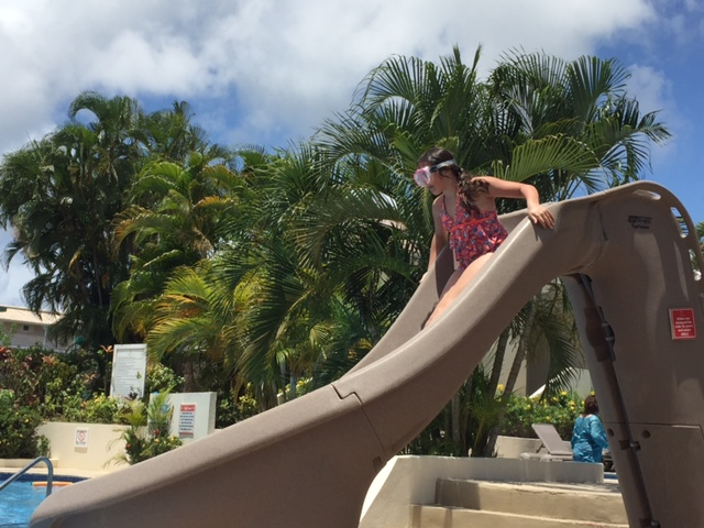 Kid’s pool: This pool is tucked behind the tennis courts and it was never crowded. It has two small waterslides and is right next to the Plum Tree Bar and Grill where you can sit and get a light snack or burgers. It is a beautiful area that is surrounded by banana plants.