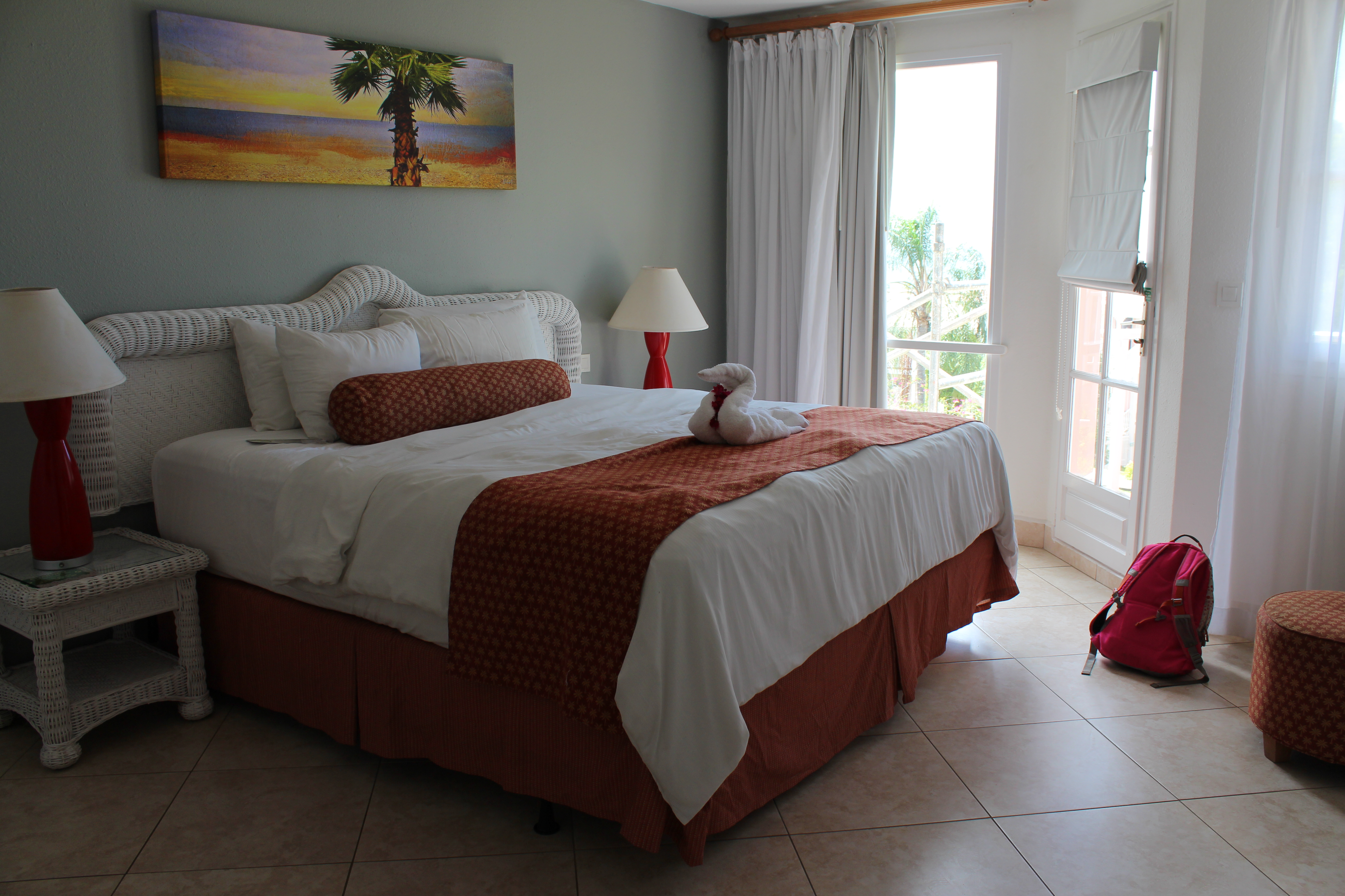 We stayed in a family suite, which is actually just two adjoining bedrooms and no living room area. There was a king size bed in one room and two double beds in the other. Each room had their own bathroom. The rooms were clean and the bathroom had plenty of toiletries that were replaced throughout the week. Since we were on the second floor we had a partial view of the Caribbean Sea. I would have loved to be on the beach but we waited too long to book our room and there were no beachfront rooms available with family suites. The only negative is there is no Wi-Fi in any of the rooms. In fact, the only place there is Wi-Fi is in the front lobby as well as one area by the pool in the Sunset Lounge. It was nice to have us all disconnect while we were in our rooms since it allowed for more family time. However, my husband wished there was Wi-Fi so he could be more connected with work throughout the week. Many of the buildings are accessible by a steep hill, so you may want to consider room location if hills would be a problem for you. I would suggest calling the front desk before booking and they could tell you which rooms would be best.