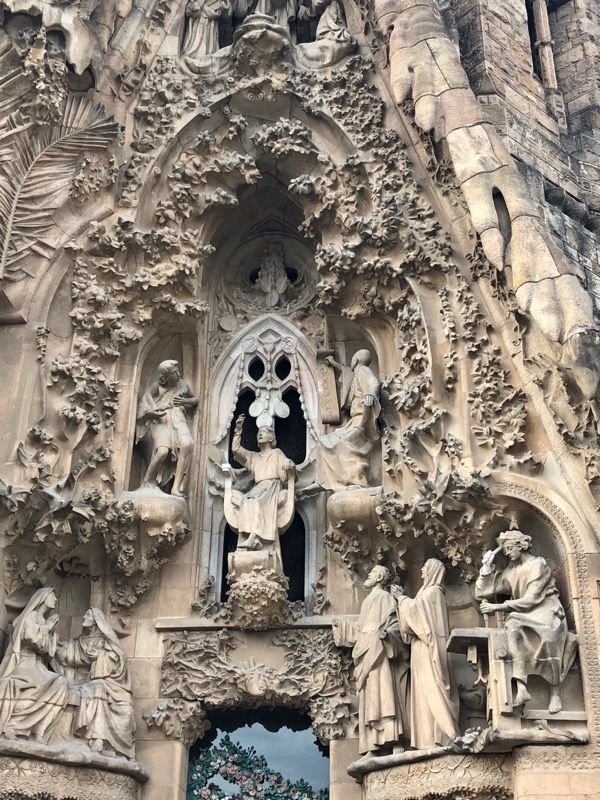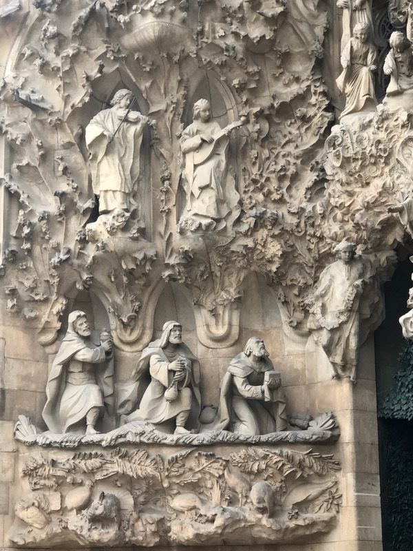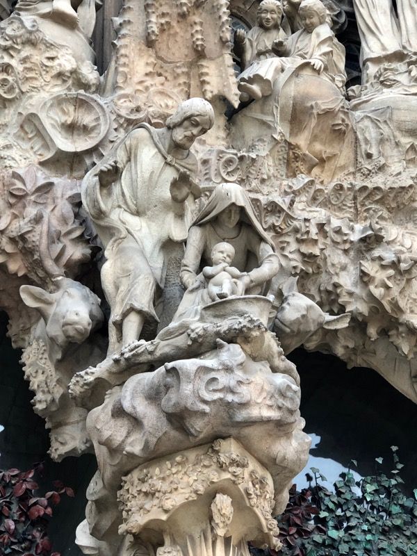 SPEND TIME LOOKING AT THE OUTSIDE OF THE CHURCH: Although you may be tempted to skip the outside and go straight inside, spend some time looking at the details Gaudi put in the outside of the church. One of the most important differences you’ll see is the front of the church is adorned with scenes from the nativity of Jesus. There are lots of animals and hopeful symbols.