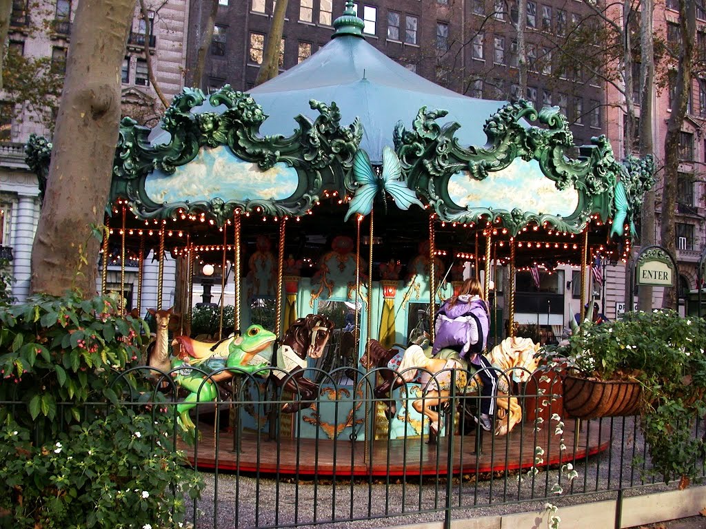 9. LE CARROUSEL IN BRYANT PARK: I like this carousel better than the one in Central Park. It is a stunning carousel that was designed with a French feel. You can sit on beautifully carved animals while French cabaret music plays. They also have a book library where you can borrow picture books and read them with your kids on one of the many shady benches.