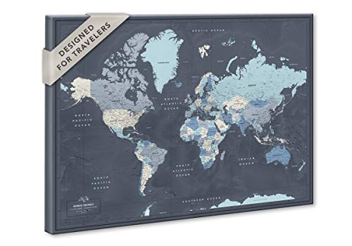 Pin Adventure map World Travel Map Push Pin on Canvas: I love the look of maps on walls, but I also like how people use it to display places they’ve been. The vintage blue color of this one will go with lots of décor. Maybe you can use this map as a family to create your Travel Bucket List!